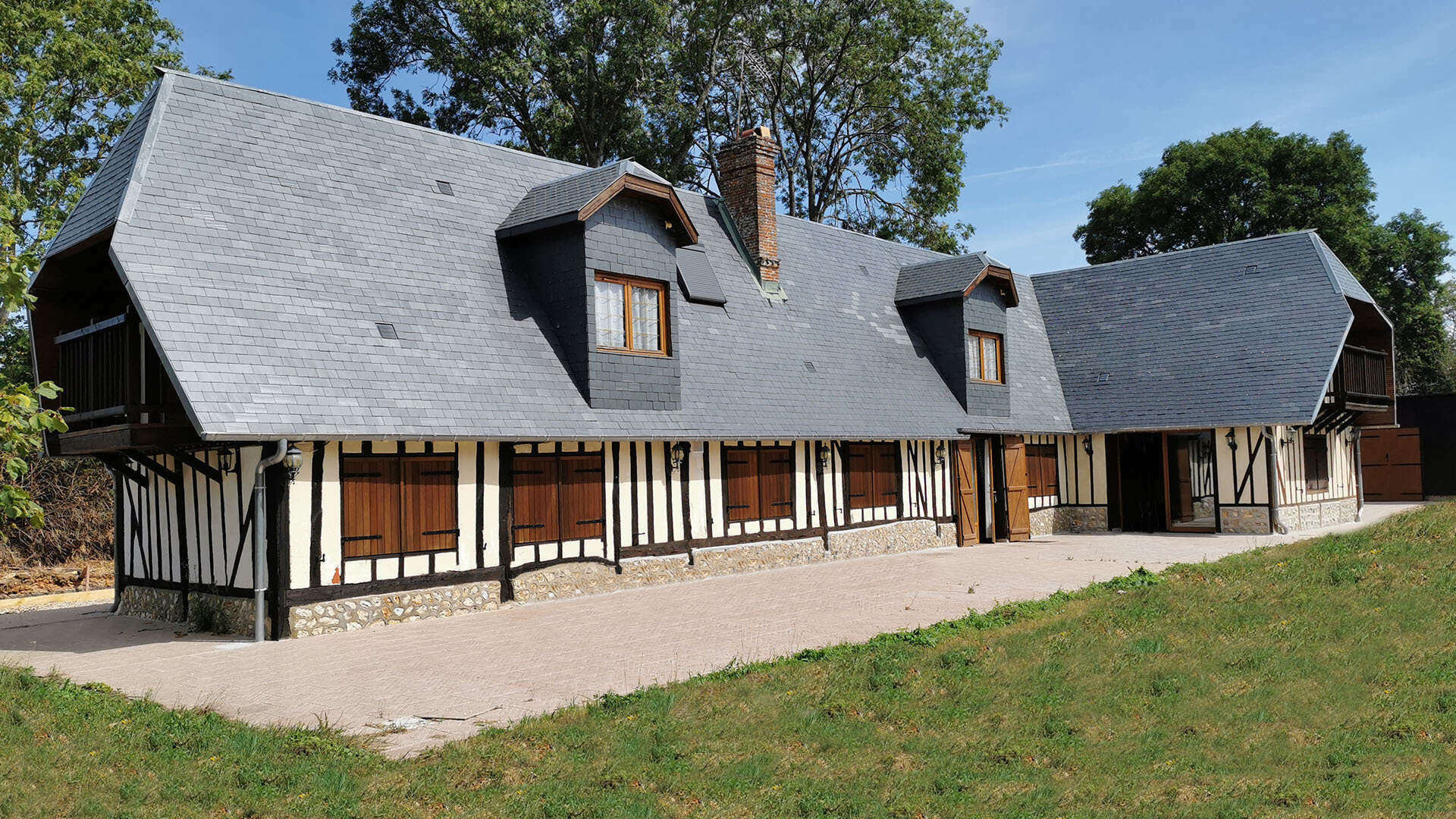 L’extension doit s’inscrire dans la continuité visuelle du bâti existant. Cela peut passer par l’usage de techniques anciennes ou leur reproduction : faux colombages, modénatures, enduits à la chaux ou pierres apparentes.